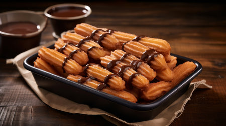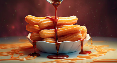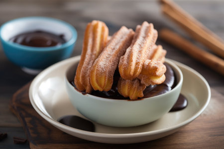 churros with warm chocolate sauce and a sprinkle of cinnamon, created with generative ai