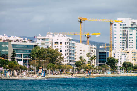 Limassol Cyprus March 16, 2020 View of a facade of a building in the streets of Limassol in the afternoon