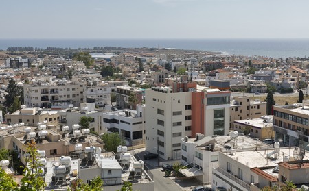 Paphos cityscape, residential district. Paphos is a Mediterranean coastal city in the southwest of Cyprus, Europe.