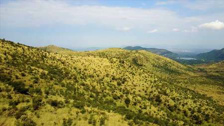 This unique photo shows the hilly landscape, from hua hin thailand, taken with a drone by the evening sun during a wonderful sunset!
