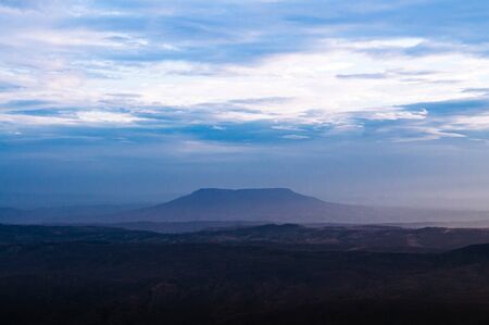 Beautiful sunset in the mountains of Kenya, Africa. Landscape.