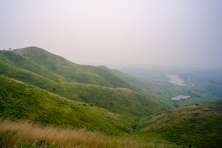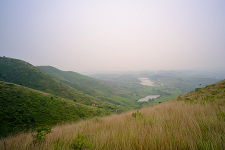 mountain with green grass and beautiful sky image is showing the amazing beauty and art of nature. This image is taken at karnataka india from hilltop.