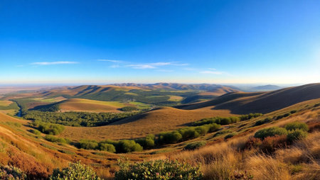 Savannah grassland in the panormaic mountain ranges in rural Kenya