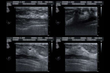 ultrasound of breast after mammography for diagnonsis Breast cancer in women isolated on black background.