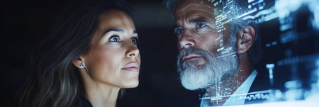 Business Meeting Businesswoman and Businessman Discussing Digital Technologies for Future Success