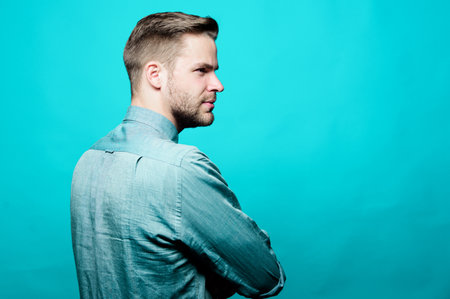 businessman with confident look. unshaven man in shirt. Man boss. Male fashion. business. Handsome macho man. Ceo and employee. copy space. success and fortune. Confident in his style