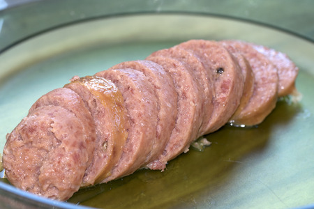 The meat and boiled sausage cut with slices