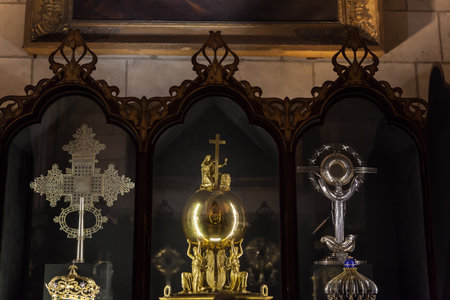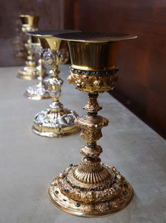 April 2019 view of real decorated cups in the Cathedral of Saint Mary of the See (Seville Cathedral) in Seville, Andalusia, Spain