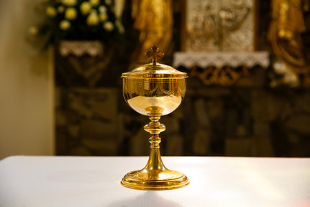 golden chalice on the altar in the Catholic Church.