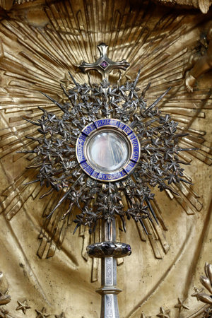 Ostensory for worship at a Catholic church ceremony - Adoration to the Blessed Sacrament - Catholic Church - Eucharistic Holy Hour