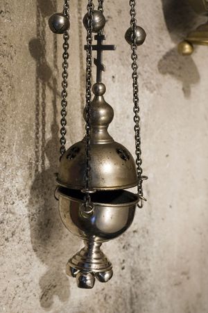 BERGAMO, ITALY - MAY 22, 2019: Metal thurible in the Sant'Andrea church in Bergamo.