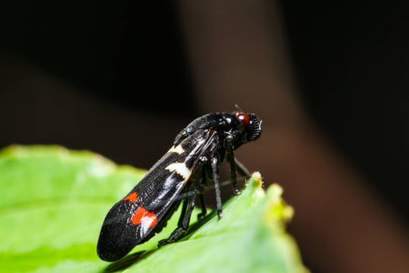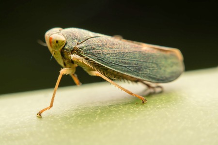 Delicate insect captured in ultra macro, body and wings of the leafhopper shimmering in natural light