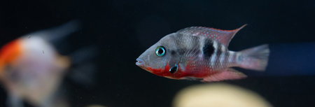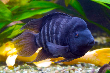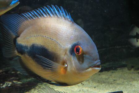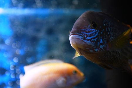 Cichlid fish swimming in an aquarium. close up view.