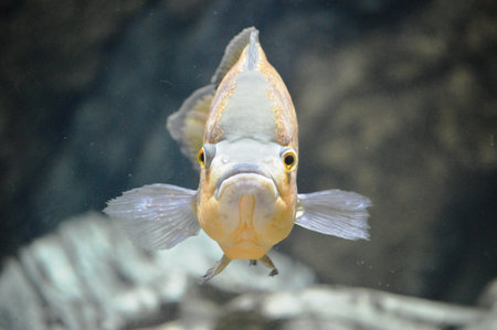 Ocellated Astronotus fish swims underwater