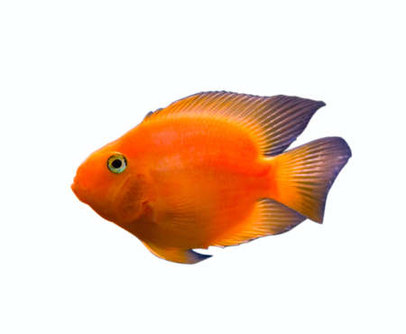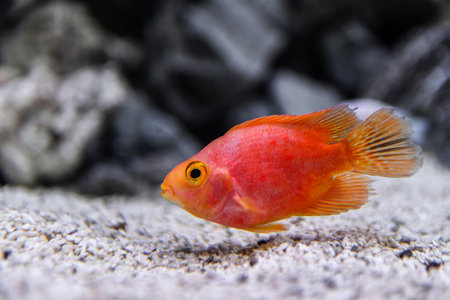 Red Parrot aquarium fish. Red cichlid parrot fish close up.
