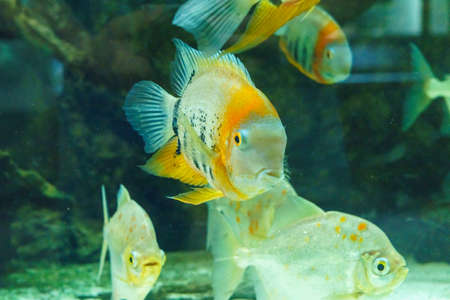 Discus fish in the aquarium, close-up of a tropical fish