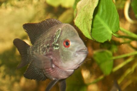 Red devil cichlid or cichlasoma labiatum close up view