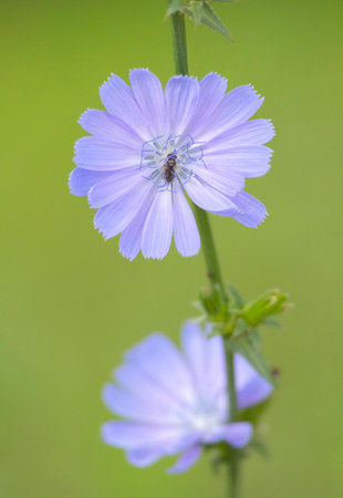 Beautiful chicory flower on an unfocused field background. High quality photo. selective focus. worm