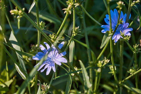 flowers plants chicory, used as a drink, brewed as a substitute for coffee, chicory flower common