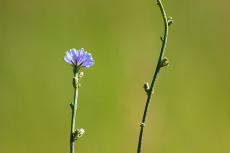 Common Chicory, Cichorium intybus, flower on stem with blurred background macro, selective focus, shallow DOF