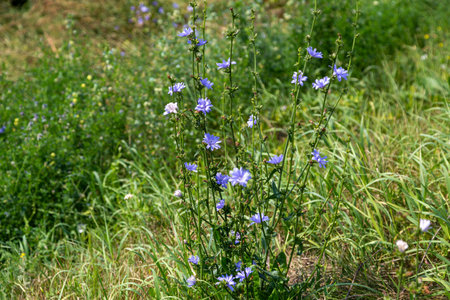 Chicory (Cichorium intybus) blooms in the wild in summer