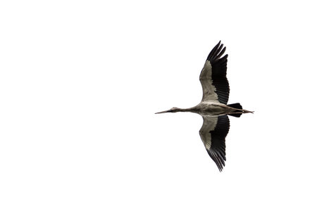 flying Open-billed stork, Asian openbill isolated on white background