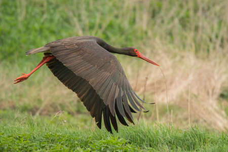 Black stork - Ciconia nigra flying near Marchegg, Austria