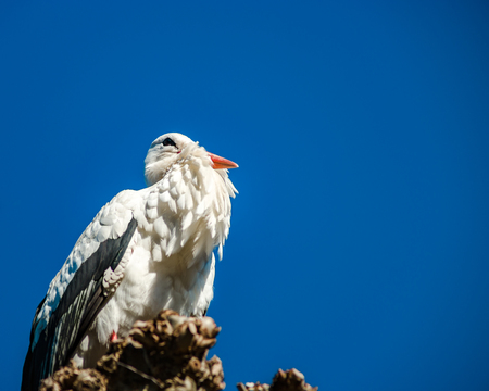 The fascinating White Storks, Ciconia ciconia at Odiaxere in the Algarve region, District Faro in Portugal.