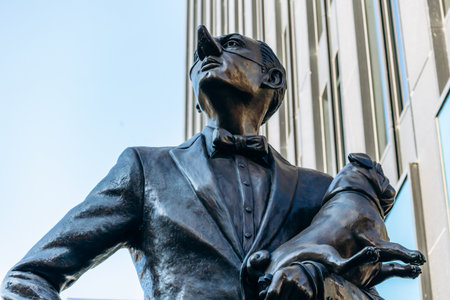 Montreal, Canada - August 11, 2025: The English Pug and the French Poodle sculpture by Marc-Andre J. Fortier at Place d’Armes in Old Montreal