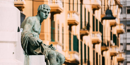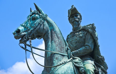 back view of the bronze statue of Victor Emmanuel II of Italy statue in Santa Margherita Ligure city.