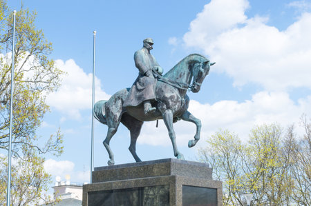 Lublin, Poland - April 14, 2018: Monument of Polish statesman Marshal Jozef Pilsudski on the horse at Lithuanian Square in Lublin.