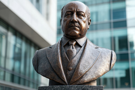 Serious-looking bronze bust statue of a distinguished older gentleman