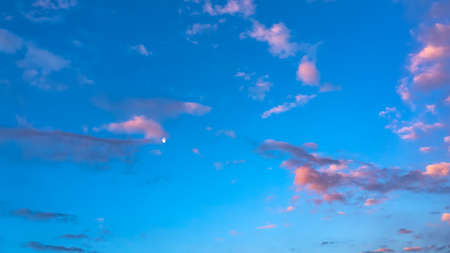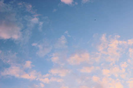 Beautiful cloudscape at sunrise. Blue sky and pinky clouds