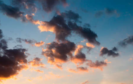 Beautiful blue sky with white clouds and vivid colors at sunset without horizon, background image