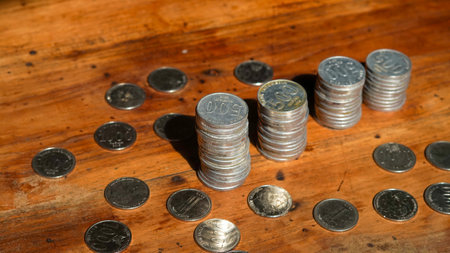 A pile of many coins on the table For money saving ideas And financial planning for the family