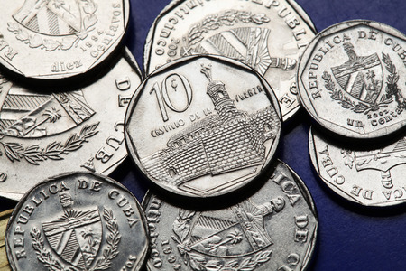Coins of Cuba. Castillo de la Real Fuerza in Havana depicted in the Cuban 10 centavo coin of Cuban convertible peso (CUC).