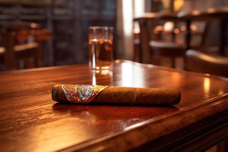 close-up of a premium cigar on a wooden table, created with generative ai