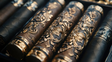 A close-up of several cigars displayed with intricate detailing on their wrappers, emphasizing craftsmanship and tradition