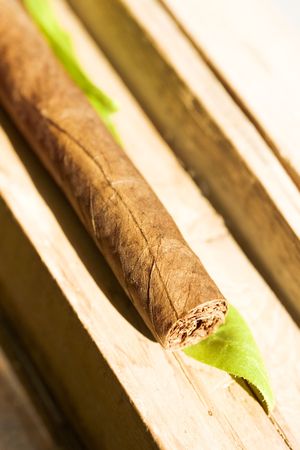 Cigar in a box, selective focus