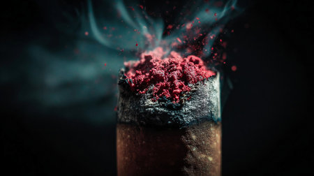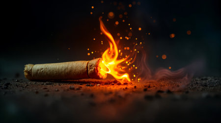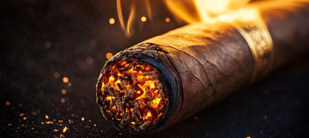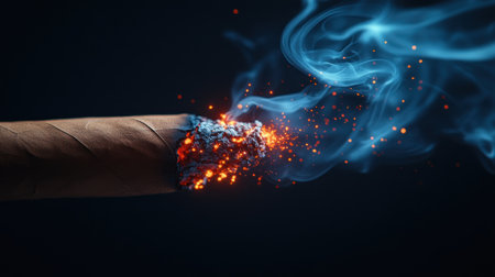 Close Up of a Burning Cigar with Glowing Ember and Fiery Sparks, Perfect for Smoking Lifestyle Image
