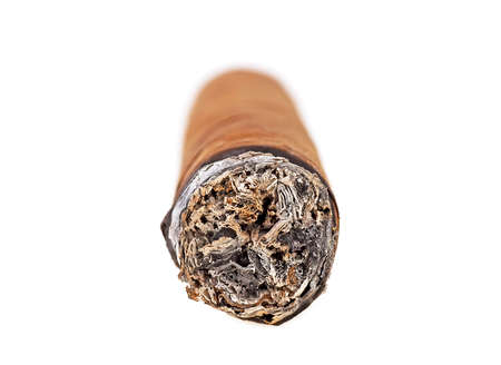 Elegant brown cigar on white background. Havana cigar isolated on white background.