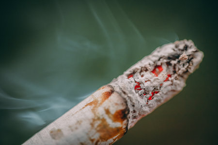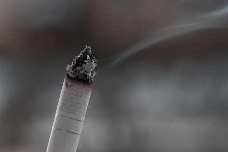 A cigarette is lit and the smoke is rising. Concept of danger and harm, as smoking is known to cause health problems