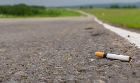 Cigarette butt thrown on the pavement. Concept for DO NOT LITTER