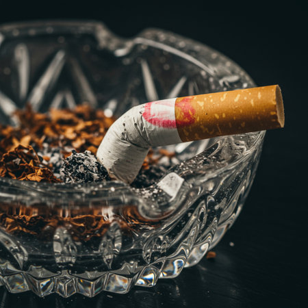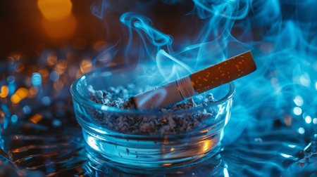 Smoldering cigarette emitting smoke against a moody dark background, illustrating the harmful effects of smoking and the visual metaphor of addiction and health risks