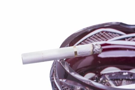 Burning smoldering smoking cigarette close-up isolated. Burning cigarette on white background
