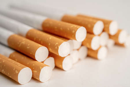 Close up cigarette in pack is addictive to be cancer.smoking reduction campaign in World No Tobacco Day.