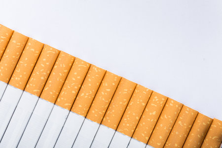 Close-up of tobacco cigarettes on a white background.