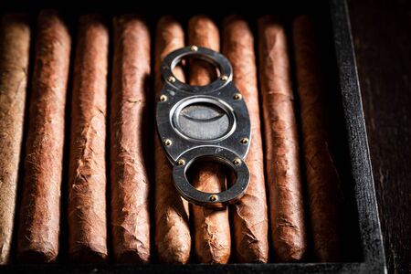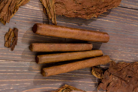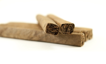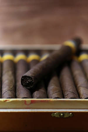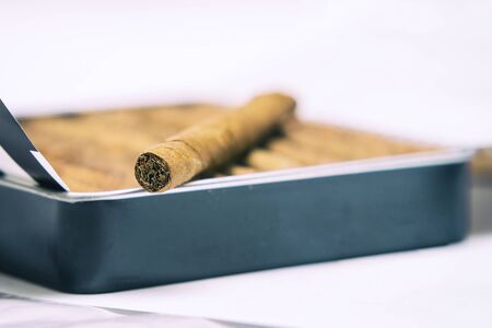 Little aroma cigars, close up. Tobacco smoking concept. Little depth of field, copy space