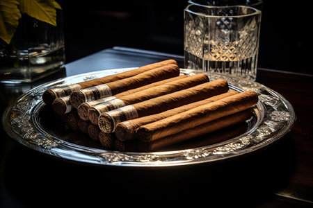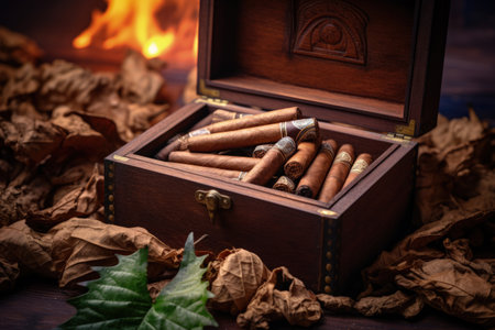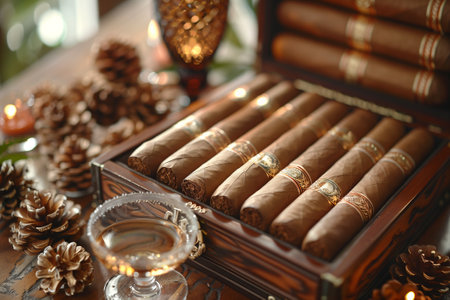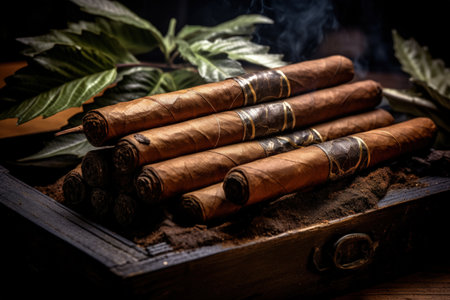 Box of cigars. Hand rolled tobacco. Luxury items. Generative Ai