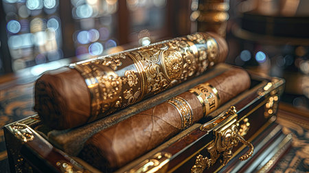 Luxury Cuba Cigars Mockup, Advertising Banner Smoking Tobacco Products and Cases Demonstration, Exclusive Goods, Generative AI Illustration